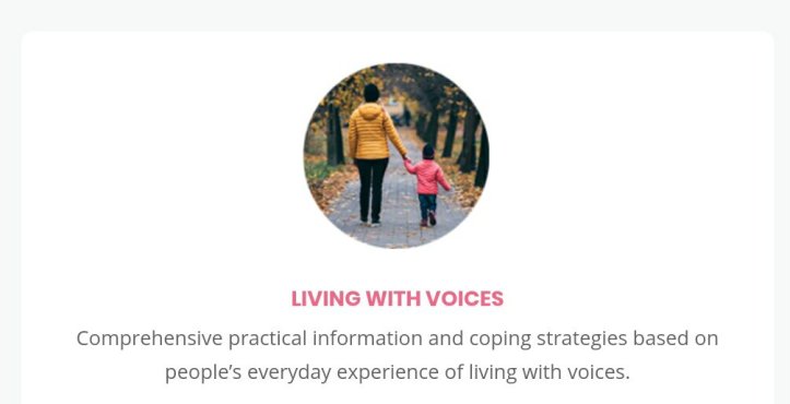 There is ideas for coping, information about medication, personal stories, thoughts on how to talk about voices and research into the history of voice hearing as well as stuff on spirituality and cultural and social context.